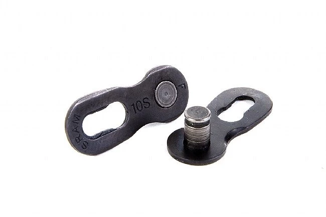 Replacement Powerlock tool-free link for SRAM 10-speed chains. SRAM recommends breaking their 10-speed chain with a chain tool to push a pin out and NOT to break the chain at the Powerlock link. When the chain is re-connected, a 10-speed Powerlock link must be used. Compatible with SRAM / Shimano 10-speed chains. Black.