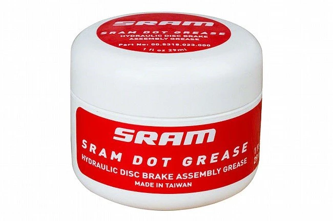 SRAM DOT Disc Brake Assembly Grease is specially formulated for DOT-fluid brake systems. Recommended for lever pistons, hose compression nuts, threaded barbs, and olives.