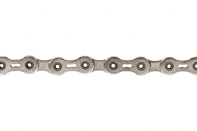 SRAM’s lightest, highest-performing 10-speed chain has all the features of the 1091 chain, plus punched outer plates to shave a few extra grams. Nickel plating on both the inner and outer plates, plus chrome-harded hollow pins, contributes to this strong yet lightweight design. Reshaped outer plates make for a quiet ride. Super-strong tool-free PowerLock connector link is included; SRAM recommends that a new PowerLock link is used every time the chain is broken and re-connected. Recommended for use with SRAM Force/Rival 10-speed groups but is compatible with all Shimano / SRAM 10-speed systems. 5.9mm width, 114 links, 251 grams.