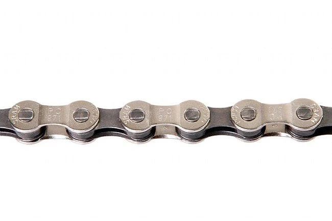 High quality 9-speed compatible mountain chain also works with road components. Nickel plated outer link and gray inner link. Gold PowerLink included for easy of installation and removal. 114 Links. Weight: 310 Grams. Compatible with SRAM/Shimano 9 speed component groups.