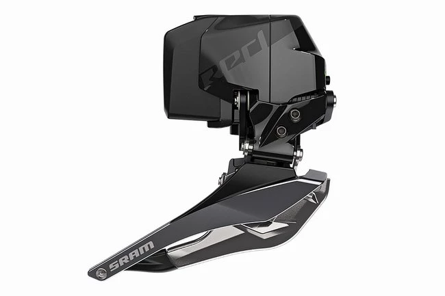The RED eTap AXS front derailleur features classic SRAM Yaw trimless cage technology with an optimized cage profile for SRAM Red front chainring combinations and is compatible with existing eTap batteries.