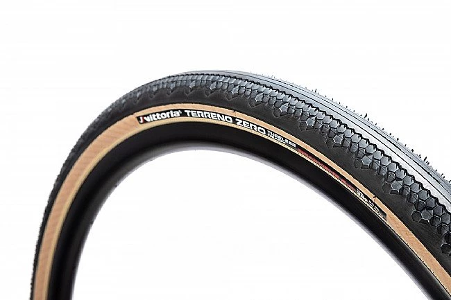 The Terreno Zero from Vittoria is a gravel tire designed with paved surfaces and hard-pack terrains in mind. The Corsa-inspired smooth center tread minimizes rolling resistance while the side tread “scales” provide dependable bite through corners, and when braking. Perfect for fast rolling rides on rougher pavement and mixed surfaces.